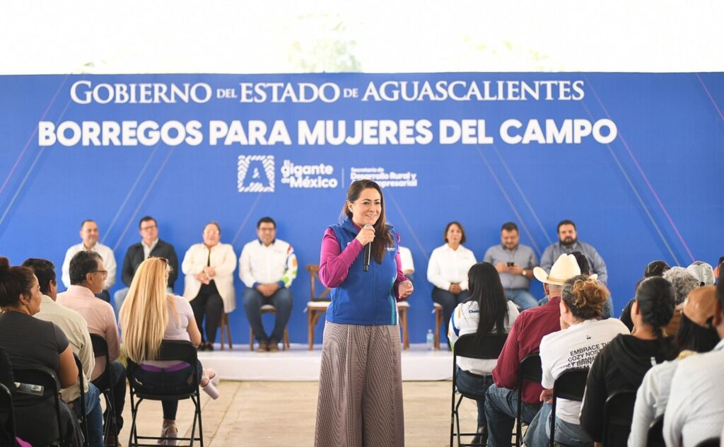 La gobernadora de Aguascalientes, Tere Jiménez, entregó borregos a mujeres del campo, en Jesús María, con el objetivo de que sigan repoblando sus establos o inicien un negocio para mejorar sus ingresos familiares.