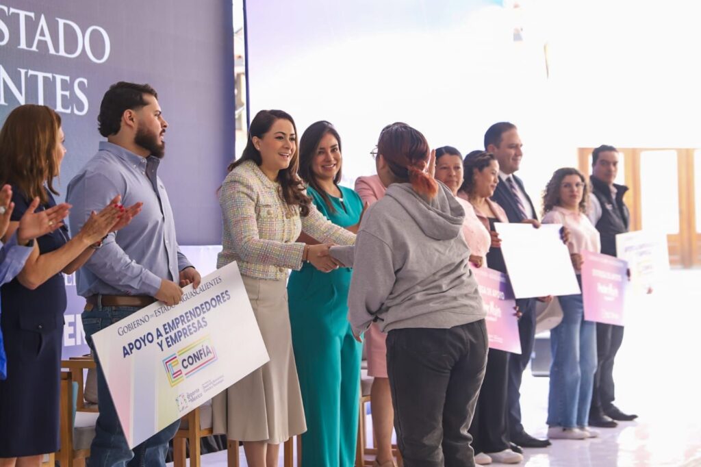 La gobernadora de Aguascalientes, Tere Jiménez, entregó más de 19.4 millones de pesos en apoyos económicos a más de mil mujeres, jóvenes y personas en situación vulnerable para que emprendan o consoliden un negocio propio que les ayude a mejorar su calidad de vida.