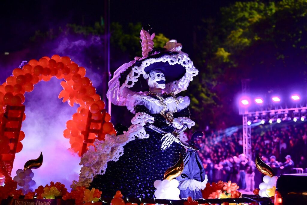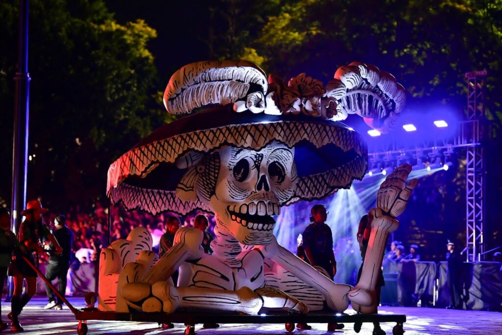 La gobernadora de Aguascali hay mentes, Tere Jiménez, encabezó la edición número 31 de este desfile, realizado bajo el lema “Grabados y Garabatos”, una propuesta que este año fusiona el estilo de la obra de José Guadalupe Posada, grabador orgullosamente hidrocálido, con los elementos más emblemáticos de la cultura y las tradiciones de la entidad, destacando la belleza de La Catrina.