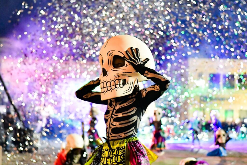 El evento concluyó con un espectáculo de pirotecnia que iluminó el cielo del Centro de la ciudad, cerrando con broche de oro una noche dedicada a celebrar la vida, la muerte y las tradiciones que dan identidad a Aguascalientes.