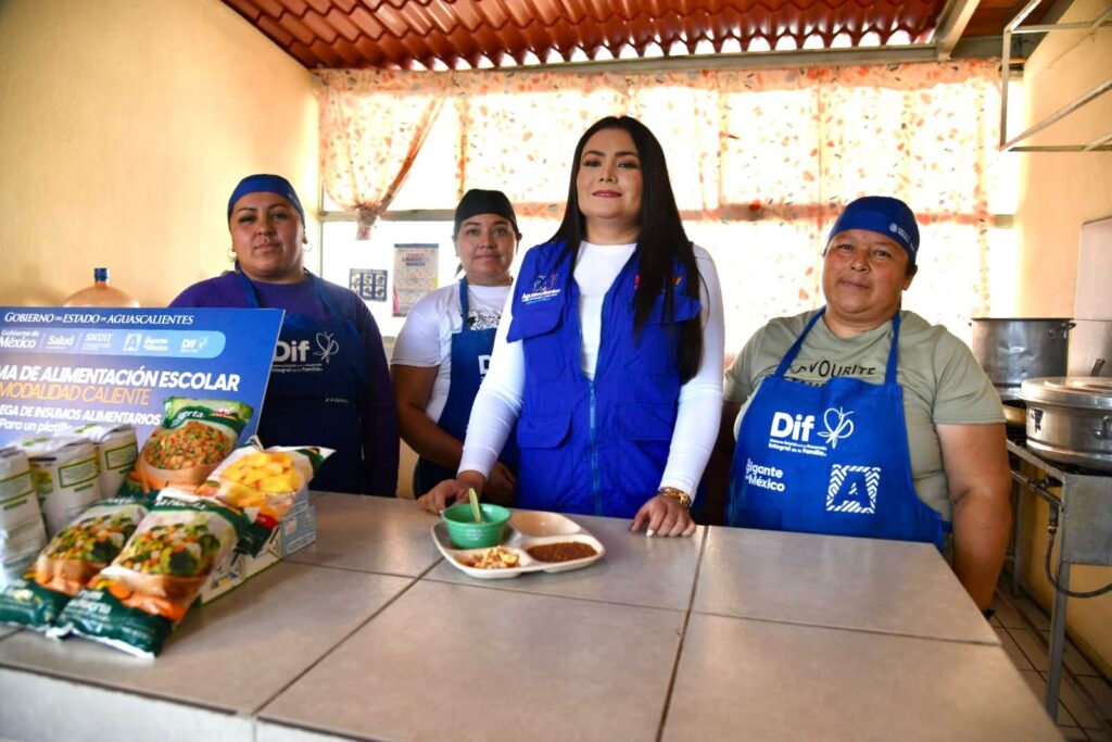 La presidenta del DIF Estatal, Aurora Jiménez Esquivel, realizó una gira de supervisión en comedores escolares del municipio de Rincón de Romos.