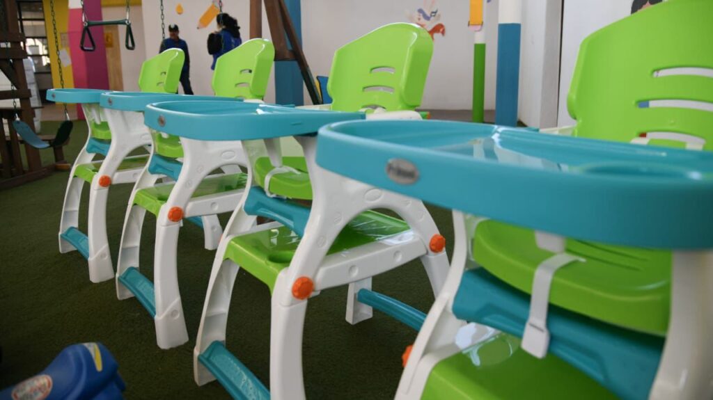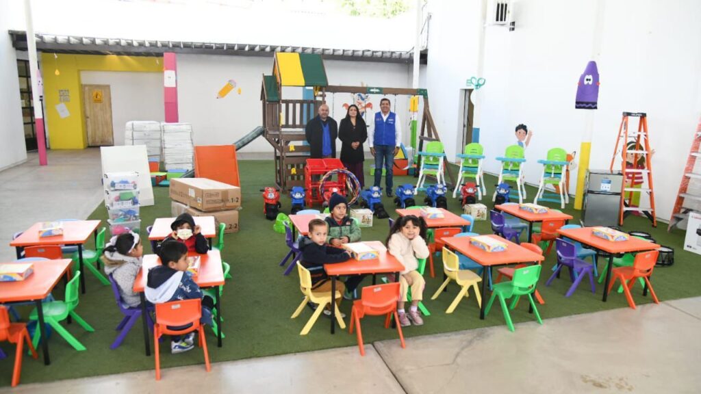 El equipamiento incluye material didáctico, mobiliario, electrodomésticos, equipo de cocina y línea blanca, juegos infantiles, así como artículos de seguridad e higiene, todo ello con el propósito de fortalecer la atención integral que reciben los pequeños en su día a día.