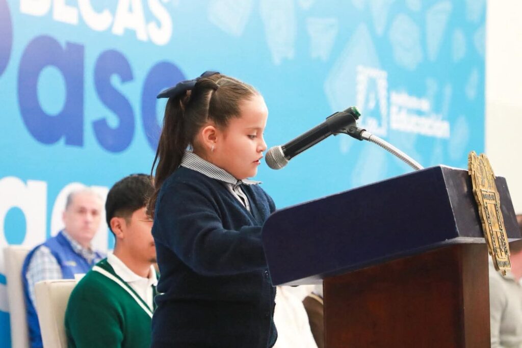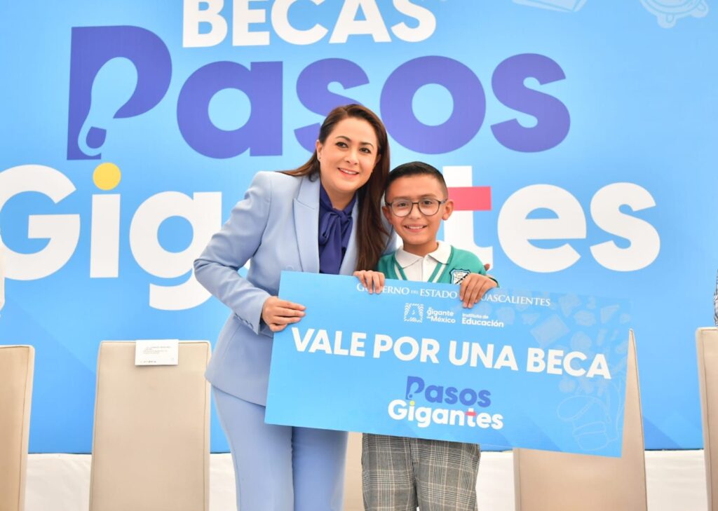 Al continuar con la entrega de becas “Pasos Gigantes” a niñas, niños y jóvenes de todos los municipios del estado, este día la gobernadora Tere Jiménez otorgó este apoyo a más de 5 mil 300 estudiantes de Calvillo y Aguascalientes que cursan su educación básica, media superior y superior.