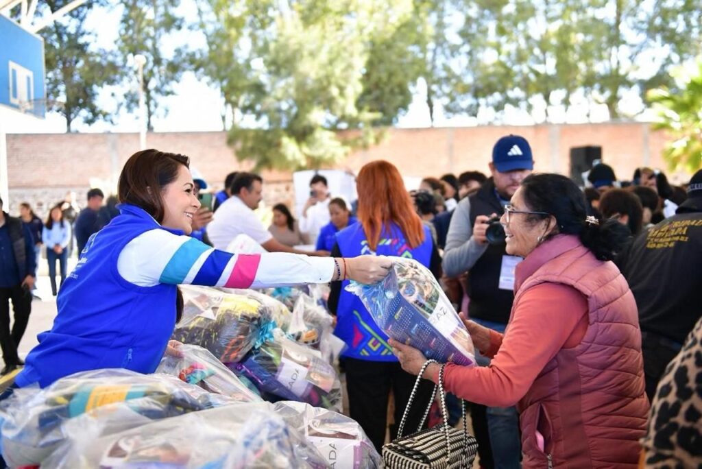 Durante la visita a estos municipios, Tere Jiménez y acompañantes dieron juguetes, bolos, despensas, cobijas, tenis, pollos, y mucho más, brindando a las familias un momento de alegría en esta temporada navideña.