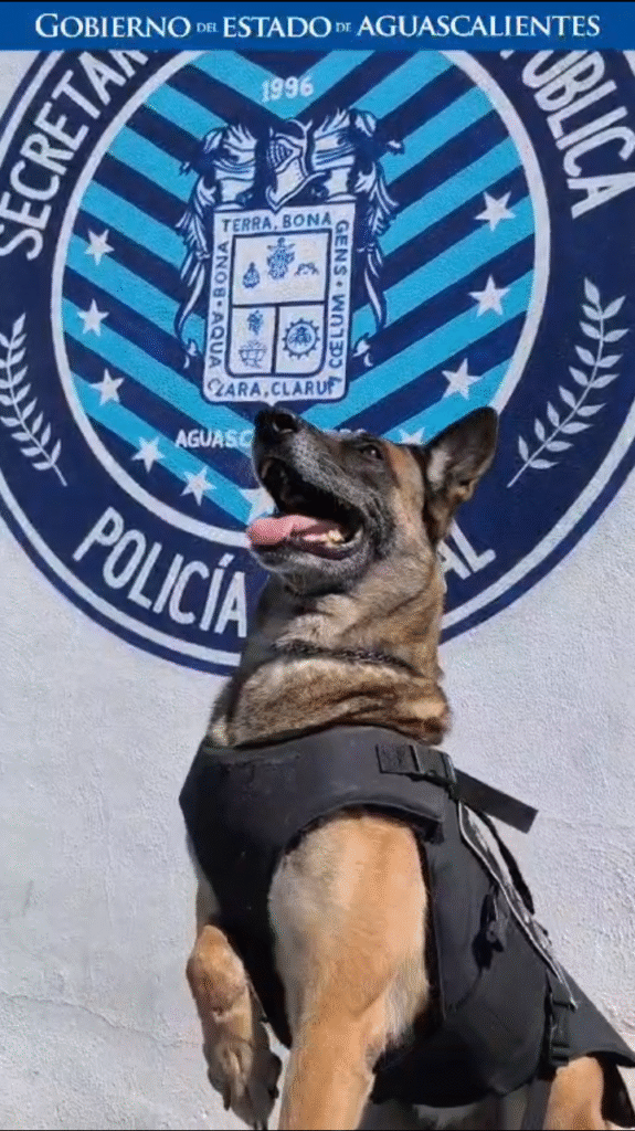 Hoy toca su turno a Katty, de la raza Pastor Belga Malinois; con siete años de edad, gracias a su agudo olfato, velocidad y entrenamiento especializado, apoya en operativos de detección y vigilancia, reforzando la protección de las familias y la seguridad en Aguascalientes.