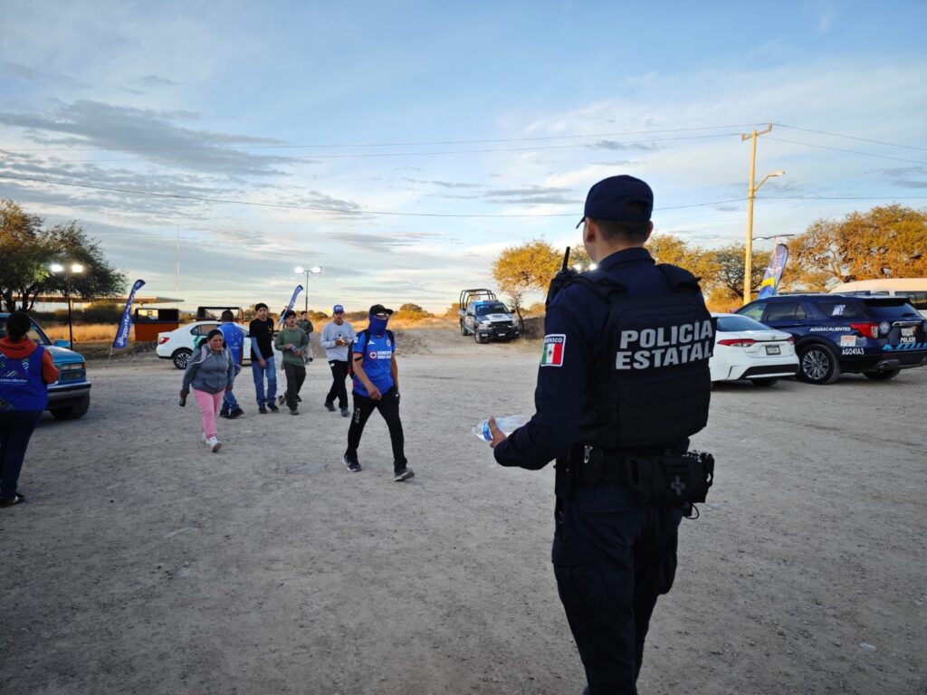 La vigilancia se reforzó este fin de semana a pie y en patrullas en el tramo de la terracería que conduce a Encarnación de Díaz, Jalisco, garantizando la seguridad de los miles de peregrinos que cada año emprenden esta ruta de fe.