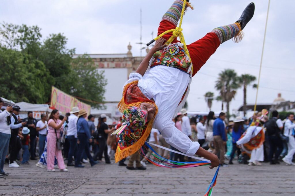 Asimismo, presenciaron el espectáculo inaugural de los Voladores de Papantla en la explanada del emblemático jardín.